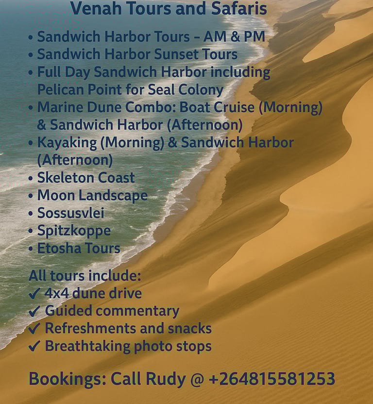 Explore Namibia's stunning dunes and wildlife with Venah Tours.